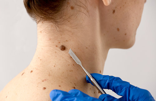 Bei auffälligen Hauttumoren ist meist eine Entfernung im Gesunden nötig.